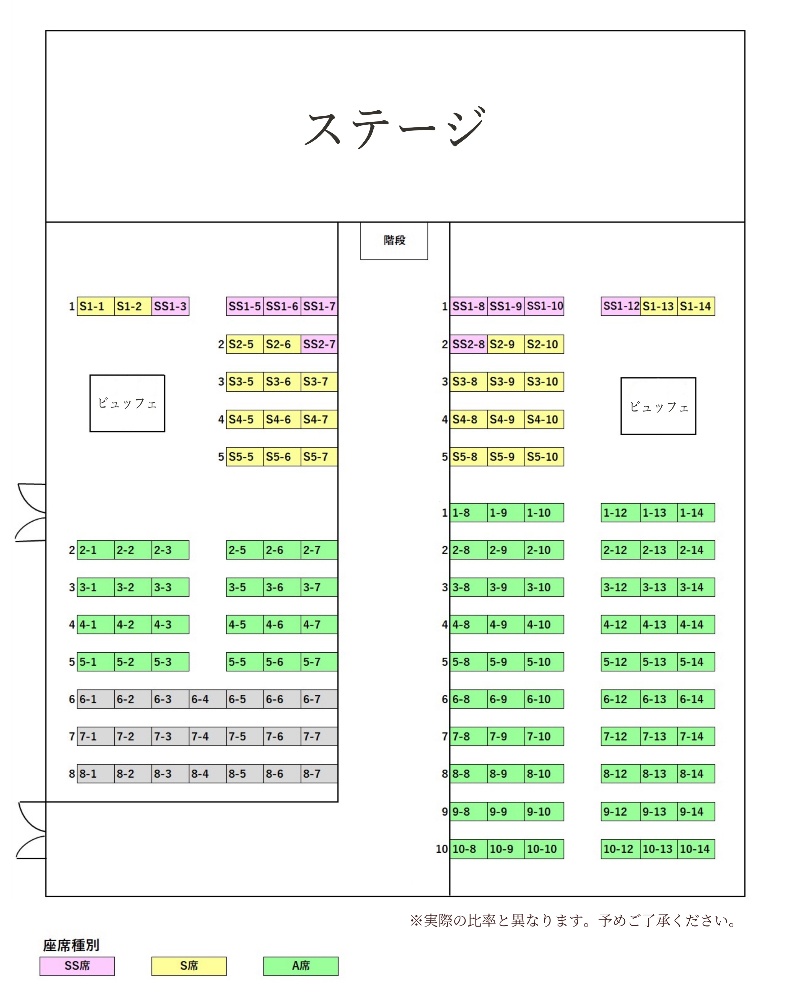 | SS席 ¥15,000 | お食事付、最前列〜2列目中央確約 |